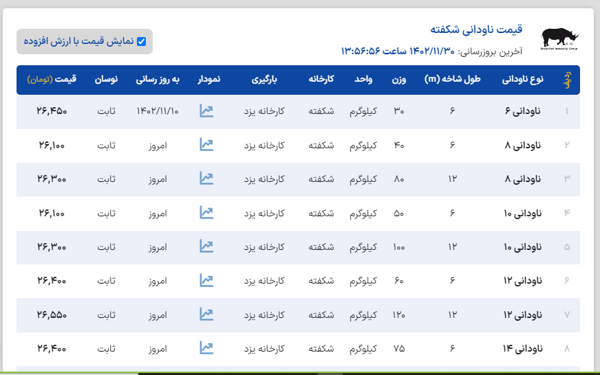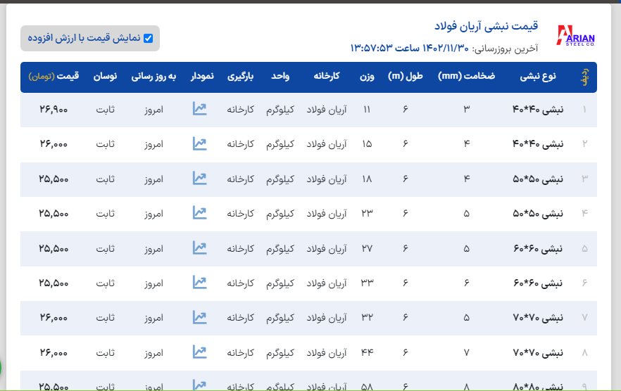 ✨موجودی سپری انبار تهران✨ ✅سپری ۳ نورد آریا ( ۱۱ ك) ✅سپری ۴ نورد سجاد ( ۱۶ ك) ✅سپری ۴ شکفته ( ۱۵ ك) ✅سپری ۵ نورد سجاد ( ۲۳ ك ) ✅سپری ۵ شکفته ( ۲۱ ك) ✅سپری ۶ نورد آسمان ( ۲۶ ك) ✅سپری ۶ شکفته ( ۲۵ ك) ✨موجودی ناودانی انبار تهران✨ ✅ناودانی ۴ فابریک اروپایی ( ۱۳ ك) ✅ناودانی ۴ اسپیرال ( ۱۷ ك) .................................................. ✅ناودانی ۵ اسپیرال ( ۲۳ ك) .................................................. 🟥ناودانی ۶ اسپیرال ( ۳۰ ك) ✅ناودانی ۶ شکفته سنگین ( ۲۹ ك) ✅ناودانی ۶ ف.تهران سبک ( ۲۳ ك ) ✅ناودانی ۶ ف.تهران سنگین ( ۲۸ ك ) .................................................. ✅ناودانی ۸ شکفته سنگین ( ۴۳ ك) ✅ناودانی ۸ ف.تهران سبک ( ۲۸ ك ) ✅ناودانی ۸ سنگین فولاد.ت ( ۳۸ ك) ✅ناودانی ۸ نستا سنگین ( ۳۸ ك ) .................................................. ✅ناودانی ۱۰ شکفته سنگین ( ۵۲ ك) ✅ناودانی ۱۰ نستا سنگین ( ۴۸ ك) ✅ناودانی ۱۰ ف.تهران سبک ( ۳۷ ك) ✅ناودانی ۱۰ ف.تهران سنگین ( ۴۸ ك) .................................................. ✅ناودانی ۱۲ شکفته سنگین ( ۶۲ ك) ✅ناودانی ۱۲ ناب تبریز ( ۶۰ ك) ✅ناودانی ۱۲ سبک ماهان ( ۵۱ ك) ✅ناودانی ۱۲ صبا استیل سبک ( ۵۲ ك) .................................................. ✅ناودانی ۱۴ شکفته سنگین ( ۷۵ ك) ✅ناودانی ۱۴ ناب تبریز ( ۷۵ ك) .................................................. ✅ناودانی ۱۶ شکفته سنگین ( ۸۵ ك) ☎️ ۰۲۱-۵۵۵۳۴۲۲۹ 📱 ۰۹۱۲۰۲۳۷۱۲۲