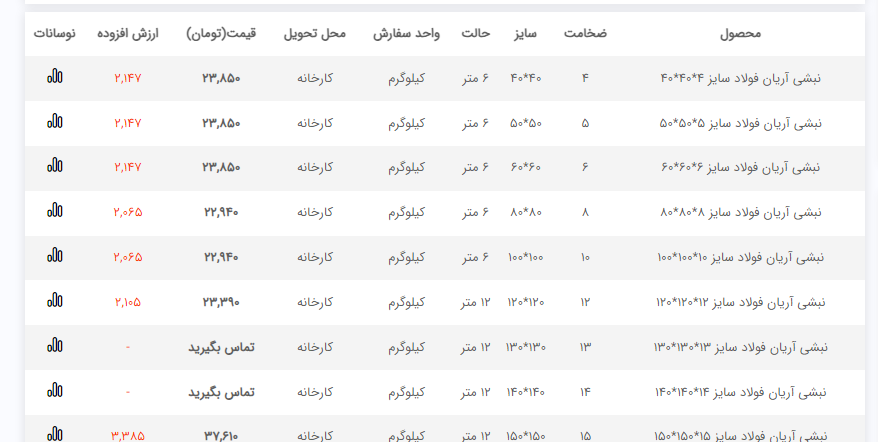 آذین سپهر الوند💫 #ناودانی 💯 🟣سایز80*80 ضخامت5 حالت6 متری محل تحویل کارخانه 🟣سایز90*90 ضخامت5 حالت6 متری محل تحویل کارخانه 🟣سایز100*100ضخامت5حالت6متری محل تحویل کارخانه 🟣سایز120*120ضخامت5 حالت6متری محل تحویل کارخانه 🟣سایز140*140ضخامت 5حالت6متری محل تحویل کارخانه 🟣سایز100*100ضخامت6حالت6متری محل تحویل کارخانه 🟣سایز120*120 ضخامت6حالت6متری محل تحویل کارخانه 🟣سایز60*120 ضخامت 6حالت6متری محل تحویل کارخانه 🟣سایز140*140ضخامت6حالت6 متری محل تحویل کارخانه 🟣سایز250*150ضخامت6حالت6 متری محل تحویل کارخانه ❗️به دلیل نوسانات بازار برای تایید موجودی و قیمت ها تماس بگیرید ❗️ کانال تلگرام 🤳 https://t.me/azinsepehralvand سایت🌐 www.azinsepehrco.com ☎️☎️☎️☎️☎️☎️ 📞09132381828 📞09394117828 📞03152467528 https://t.me/azinsepehralvan