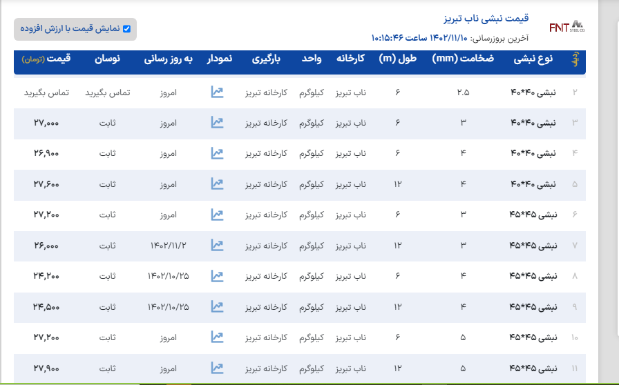 نبشی و ناودانی | اعلام موجودی و قیمت‌ها - فولاد 24
