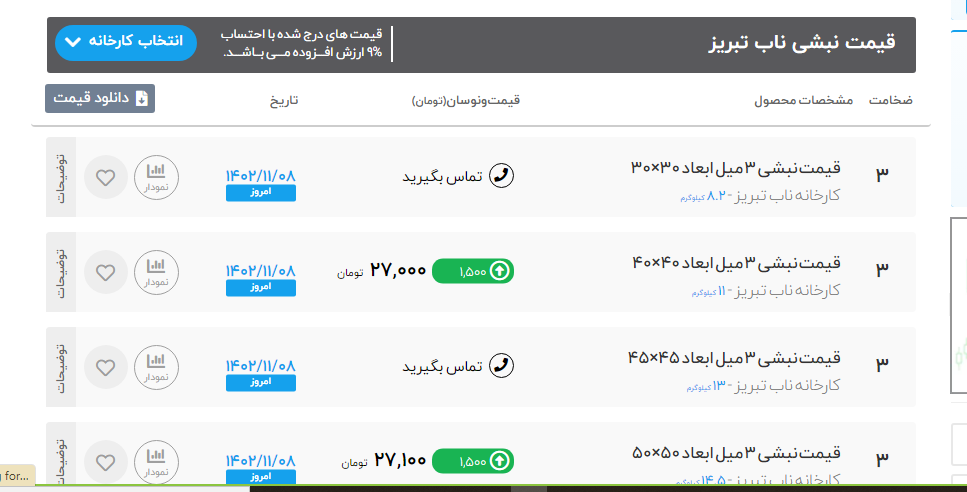 اعلام موجودی نبشی فولاد جاوید بناب " فولاد جاوید بناب " با سلام و عرض ادب *قیمت روز یکشنبه ۱۴۰۲/۱۱/۰۸ 🔹نبشی 40*3 سبک : ۲۷۷۰۰۰ ریال 🔹نبشی 40*3 : ۲۷۲۰۰۰ ریال 🔹نبشی 40*4 سبک : ۲۷۰۵۰۰ ریال 🔹نبشی 40*4 : ۲۷۰۰۰۰ ریال 🔹نبشی 50*3 سبک : ۲۷۷۰۰۰ ریال 🔹نبشی 50*3 : ۲۷۲۰۰۰ ریال 🔹نبشی 50*4 سبک : ۲۷۰۵۰۰ ریال 🔹نبشی 50*4 : ۲۷۰۰۰۰ ریال 🔹نبشی 50*5 سبک : ۲۷۰۵۰۰ ریال 🔹نبشی 50*5 : ۲۷۰۰۰۰ ریال 🔹نبشی 60*3 : ۲۷۲۰۰۰ ریال 🔹نبشی 60*4 : ۲۷۱۰۰۰ ریال 🔹نبشی 60*5 : ۲۷۰۰۰۰ ریال 041-37780433-6 t.me/javidsteel_bonab