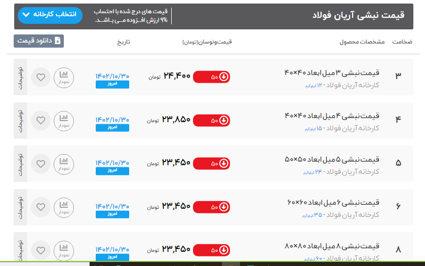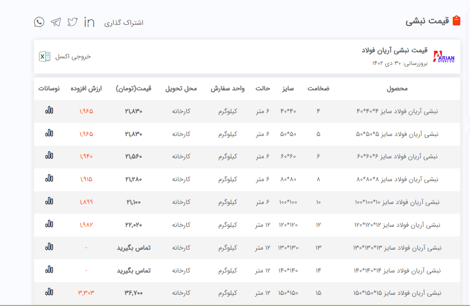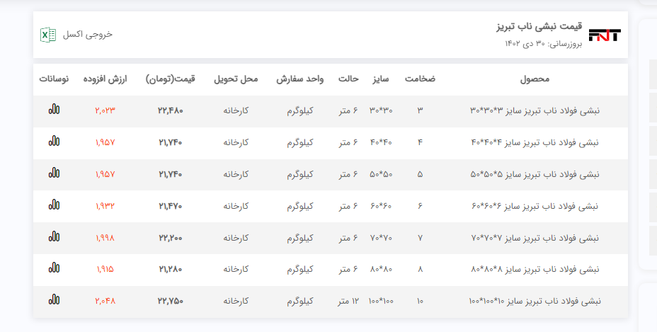نبشی و ناودانی | اعلام موجودی و قیمت‌ها - فولاد 24