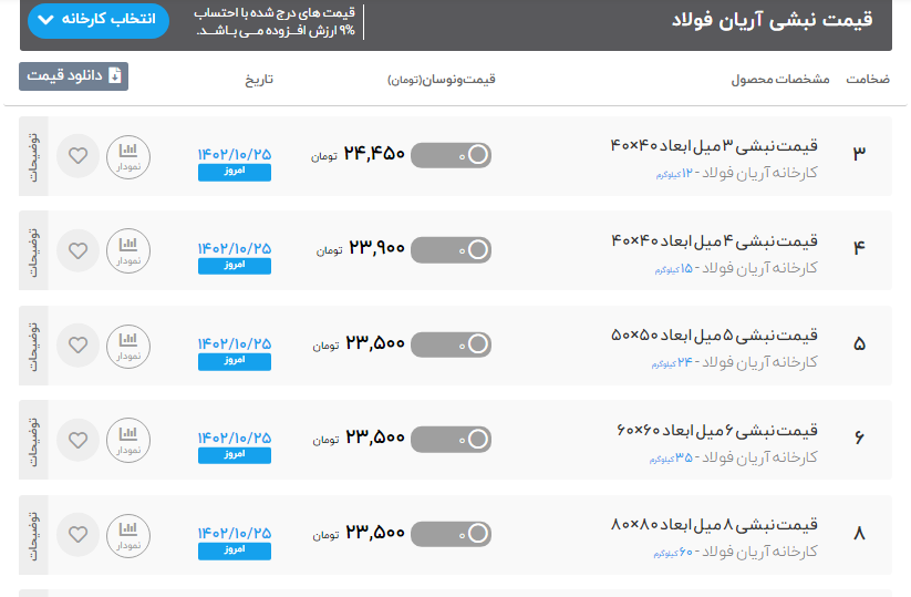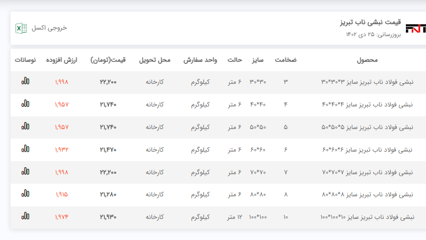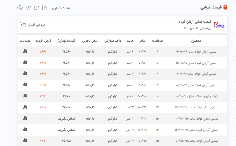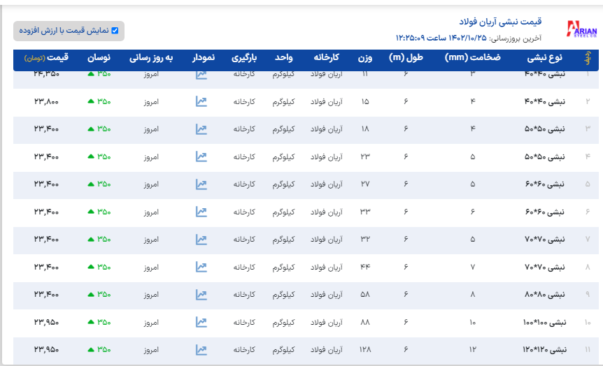 نبشی و ناودانی | اعلام موجودی و قیمت‌ها - فولاد 24