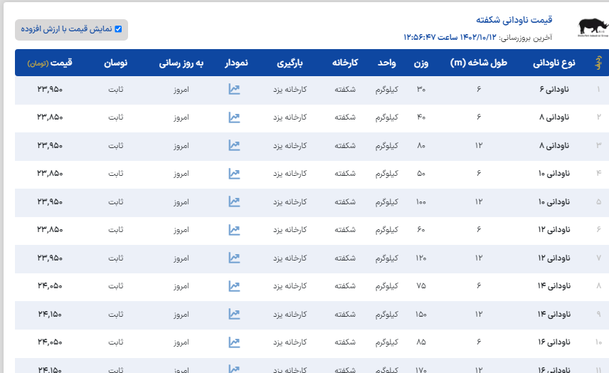 اعلام موجودی نبشی آهن یاب لیست کالای نبشی نورد آریان فولاد: 📅 سه شنبه : ۱۴۰۲/۱۰/۱۲ (ثبات قیمت) ♦️نبشی ۴*۴ 💵 23350 تومان ♦️نبشی۵*۵ 💵22950 تومان ♦️ نبشی ۶*۶ 💵22950 تومان ♦️ نبشی ۷*۷ 💵22950 تومان ♦️نبشی ۸*۸ 💵22950 تومان ♦️نبشی ۱۲*۱۲ 💵23100 تومان