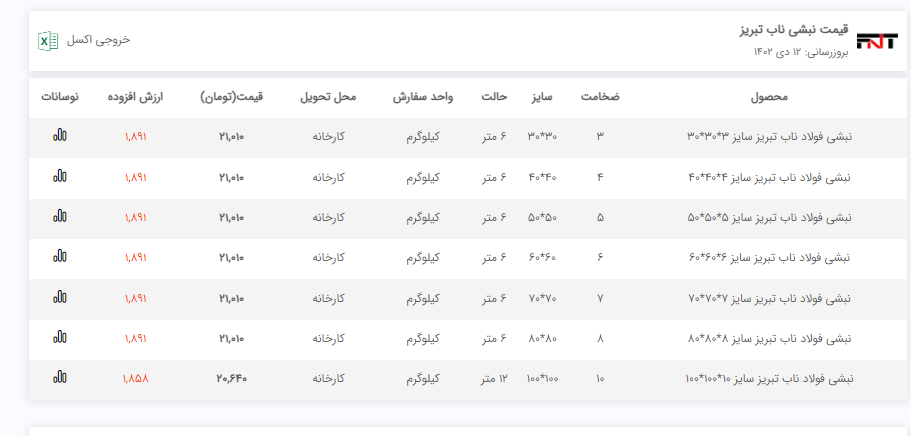 نبشی و ناودانی | اعلام موجودی و قیمت‌ها - فولاد 24