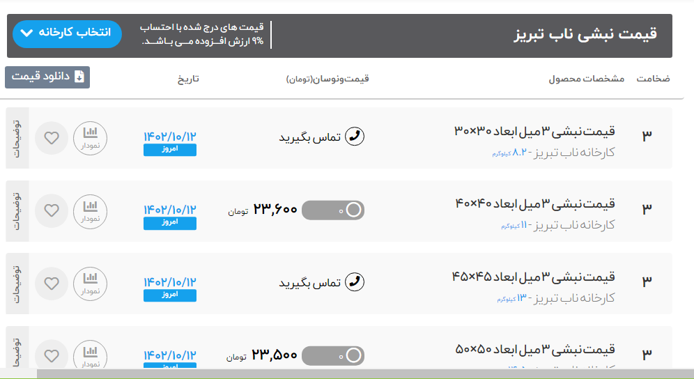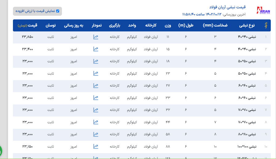 قیمت ظرفیت🔊 نبشی آریان بوئین زهرا ۴/۳                 239500 ۴/۴                 234000 ۵/۴                 230000 ۵/۵                 230000 ۶/۶                 230000 ۷/۷                 230000 ۸/۸                 230000 ۱۰/۱۰                231500 ۱۲                    231500