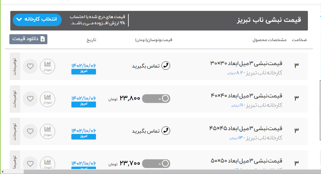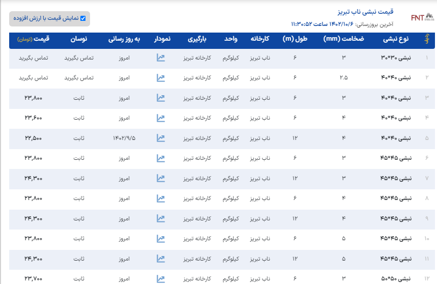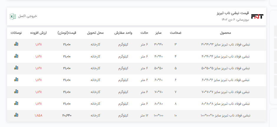 اعلام موجودی نبشی اهن یاب لیست کالای فولاد ناب تبریز : 📅 چهارشنبه : ۱۴۰۲/۱۰/۶ (ثبات قیمت) ♦️ نبشی ۴*۴ 💵23750 تومان ♦️نبشی ۵*۵ 💵23450 تومان ♦️ نبشی۶*۶ 💵23450 تومان