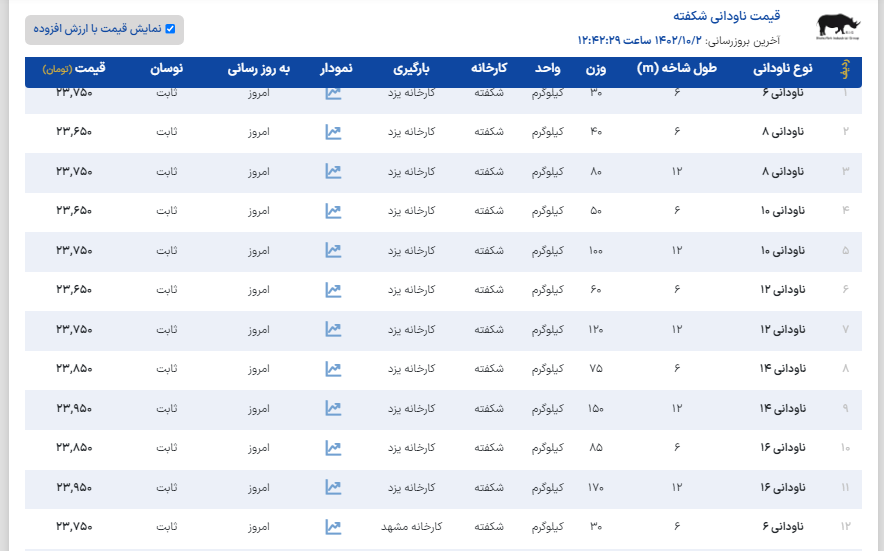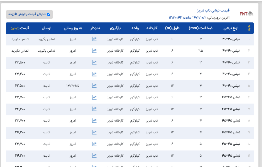 اعلام وجودی نبشی آهن یاب ❇️ لیست کالای نبشی نورد آریان فولاد: 📅 شنبه : ۱۴۰۲/۱۰/۲ (کاهش قیمت) ♦️نبشی ۴*۴ 💵 23550 تومان 📉 50 ♦️نبشی۵*۵ 💵23150 تومان 📉 50 ♦️ نبشی ۶*۶ 💵23150 تومان 📉 50 ♦️ نبشی ۷*۷ 💵23150 تومان 📉 50 ♦️نبشی ۸*۸ 💵23150تومان 📉 50 ♦️نبشی ۱۲*۱۲ 💵23000 تومان 📉 50