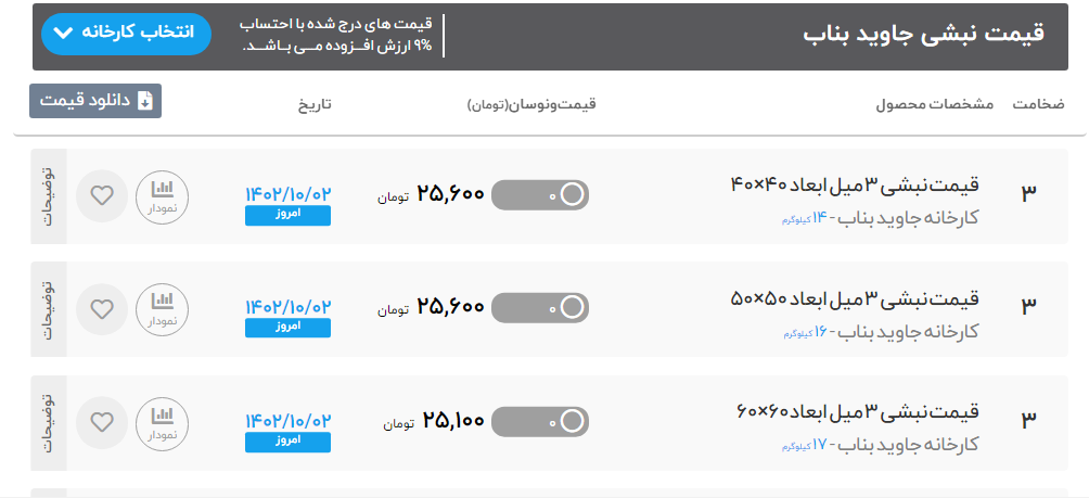 اعلام موجودی نبشی فولاد جاوید بناب " فولاد جاوید بناب " با سلام و عرض ادب *قیمت روز شنبه ۱۴۰۲/۱۰/۰۲ 🔹نبشی 40*3 سبک : ۲۵۶۰۰۰ ریال 🔹نبشی 40*3 : ۲۴۱۰۰۰ ریال 🔹نبشی 40*4 سبک : ۲۴۰۵۰۰ ریال 🔹نبشی 40*4 : ۲۴۰۰۰۰ ریال 🔹نبشی 50*3 سبک : ۲۵۶۰۰۰ ریال 🔹نبشی 50*3 : ۲۴۱۰۰۰ ریال 🔹نبشی 50*4 سبک : ۲۴۰۵۰۰ ریال 🔹نبشی 50*4 : ۲۴۰۰۰۰ ریال 🔹نبشی 50*5 سبک : ۲۴۰۵۰۰ ریال 🔹نبشی 50*5 : ۲۴۰۰۰۰ ریال 🔹نبشی 60*3 : ۲۵۱۰۰۰ ریال 🔹نبشی 60*4 : ۲۴۱۰۰۰ ریال 🔹نبشی 60*5 : ۲۴۰۰۰۰ ریال 041-37780433-6