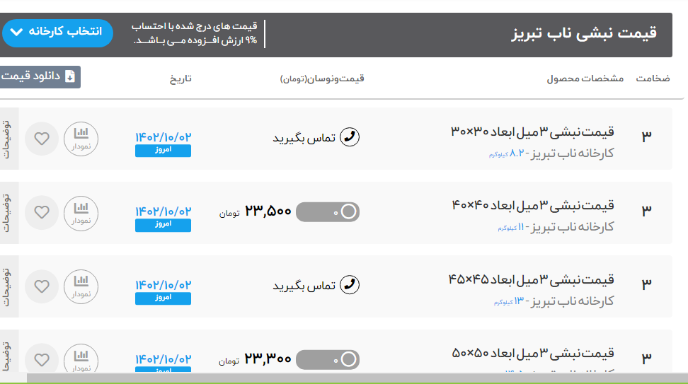 اعلام موجودی نبشی آهن یاب لیست کالای فولاد ناب تبریز : 📅 شنبه : ۱۴۰۲/۱۰/۲ (ثبات قیمت) ♦️ نبشی ۴*۴ 💵23550 تومان ♦️نبشی ۵*۵ 💵23150 تومان ♦️ نبشی۶*۶ 💵23150 تومان