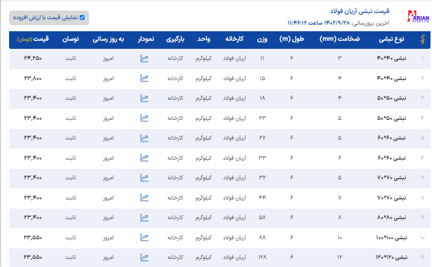 اعلام موجودی نبشی آراد فولاد آذربایجان #فولاد_جاوید 🔸نبشی 40*3 سبک : ۲۵۶۰۰۰ ریال 🔸نبشی 40*3 : ۲۳۹۰۰۰ ریال 🔸نبشی 40*4 سبک : ۲۳۸۵۰۰ ریال 🔸نبشی 40*4 : ۲۳۸۰۰۰ ریال 🔸نبشی 50*3 سبک : ۲۵۶۰۰۰ ریال 🔸نبشی 50*3 : ۲۳۹۰۰۰ ریال 🔸نبشی 50*4 سبک : ۲۳۸۵۰۰ ریال 🔸نبشی 50*4 : ۲۳۸۰۰۰ ریال 🔸نبشی 50*5 سبک : ۲۴۰۰۰۰ ریال 🔸نبشی 50*5 : ۲۳۸۰۰ریال 🔸نبشی 60*3 : ۲۵۱۰۰۰ ریال 🔸نبشی 60*4 : ۲۳۹۰۰۰ ریال 🔸نبشی 60*5 : ۲۳۸۰۰۰ ریال ✅تخفیف پای آدرس ☎️ 041-37731232 📱 0914-4222215 #نبشی #آراد_فولاد_آذربایجان