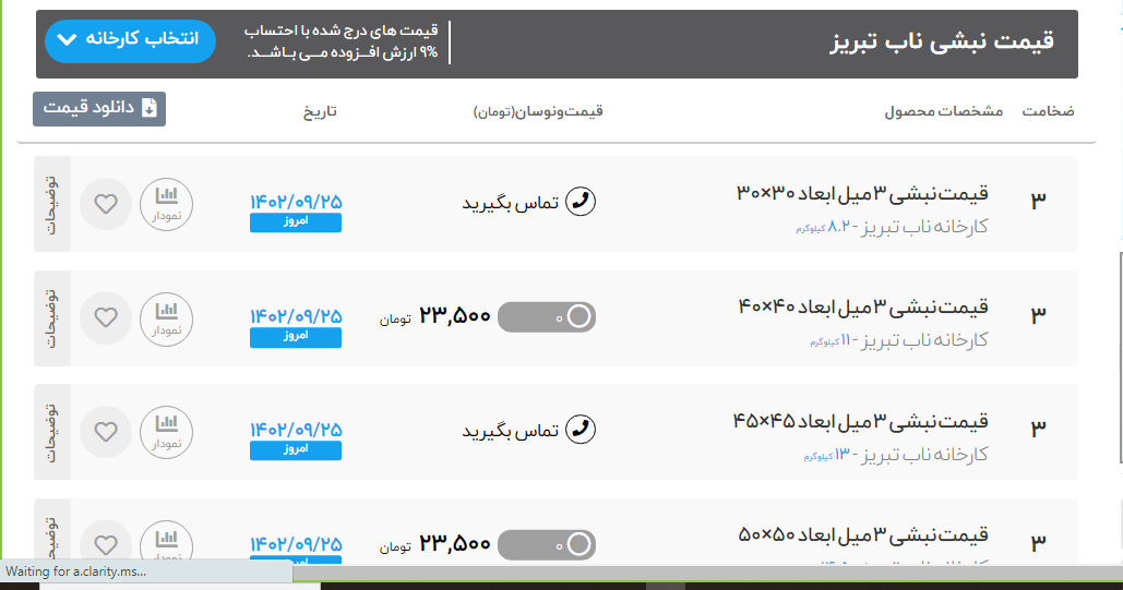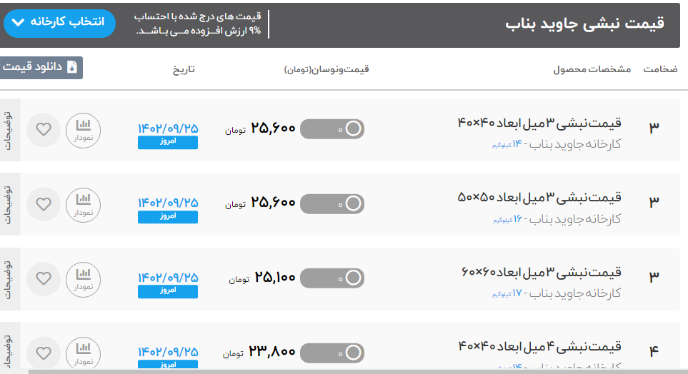قیمت ظرفیت🔊 نبشی آریان بوئین زهرا ۴/۳ 241500 ۴/۴ 240000 ۵/۴ 236000 ۵/۵ 236000 ۶/۶ 236000 ۷/۷ 236000 ۸/۸ 236000 ۱۰/۱۰ 237500 ۱۲ 237500