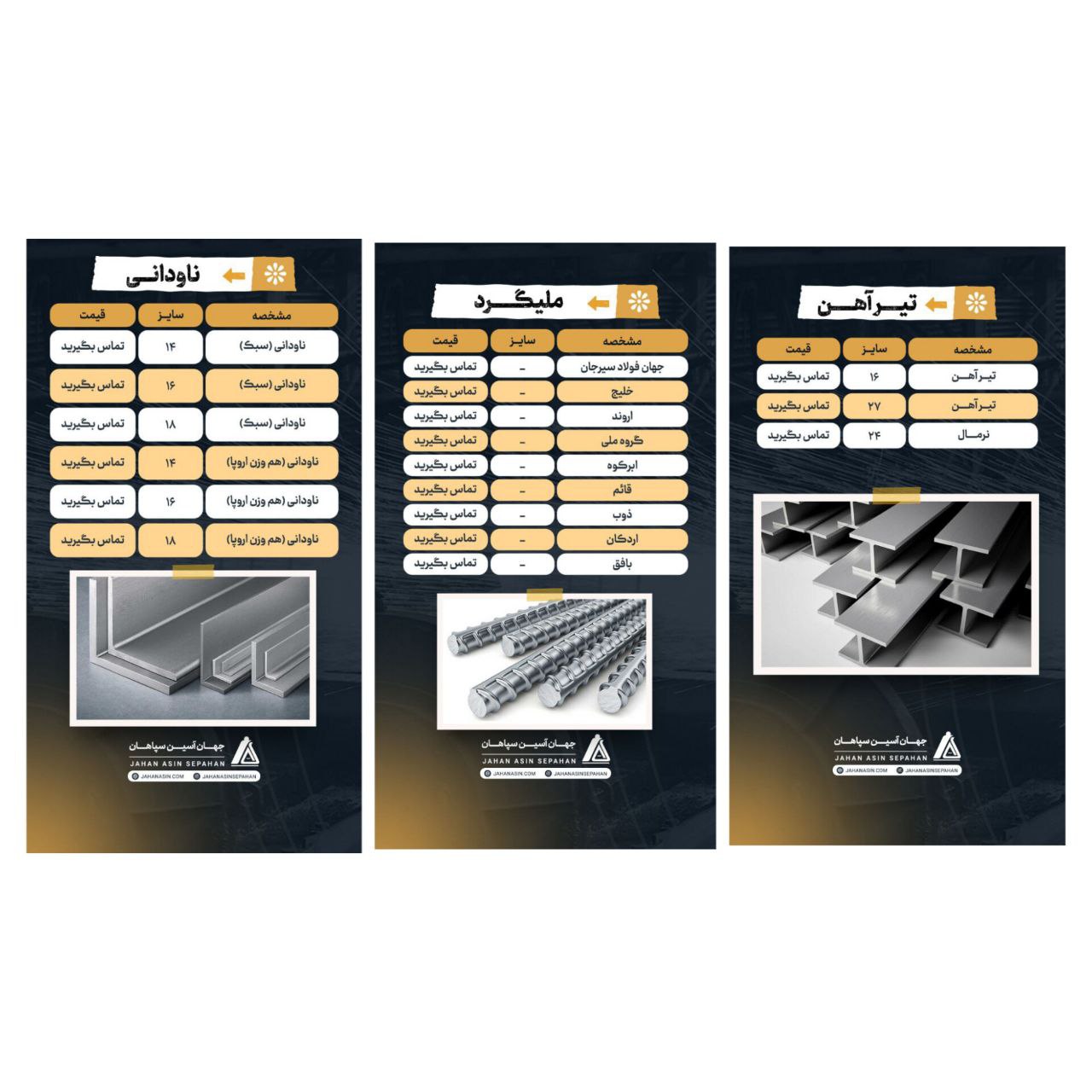 ⚜️#زرین_ تجارت_ فولاد _مهفام⚜️ ⭕️ ليست #تيرآهن #ذوب_آهن (شاخه / كيلو) 🔸تیرآهن ١٢تا تیرآهن ٣٠ ⭕️ ليست #تيرآهن #بال #پهن #هاش 🔸هاش١٠ تا هاش ٦٠ ⭕️ ليست ورق #فولاد_خرم_آباد #ST37 #ST52⭕️ ✅ ورق ۱۲ میل (٦*۱/۲۵) ✅ ورق ۱۵ میل (٦*۱/۲۵) ✅ ورق ٢٠ میل (٦*۱/۵)(٦*۱/۲۵) ✅ ورق ٢٥ میل (٦*۱/۵)(٦*۱/۲۵) ✅ ورق ٣٠ میل (٦*۱/۵)(٦*۱/۲۵) ✅ ورق ٣٥ میل (طول*۱/۵)(طول*۱/۲۵) ✅ ورق ٤٠ میل (طول*۱/۵)(طول*۱/۲۵) ✅ ورق ۴۵ میل(طول*۱/۵)(طول*۱/۲۵) ✅ ورق ۵۰ میل (طول*۱/۵)(طول*۱/۲۵) ✅ ورق ٦۰ میل (طول*۱/۵)(طول*۱/۲۵) لیست قیمت #ناودانی_ترک 🔸 ناودانی 4 : ٥٠٠,۰۰۰ ریال 🔸 ناودانی 5 : ٥٢٠,۰۰۰ ریال 🔸 ناودانی 6.5 : ٥٢٠,۰۰۰ ریال 🔸 ناودانی 16 : ٥٤٠,۰۰۰ ریال 🔸 ناودانی 20 : ٥٤٠,۰۰۰ ریال 🔸 ناودانی 30 : ٥٤٠,۰۰۰ ریال 🔸 ناودانی 40 : ٦٤٠,۰۰۰ ریال #جهت_مشاهده_پروفایل_زرین_تجارت_فولاد_مهفام👇🏻 🌍https://foolad24.com/profile/13492 #جهت_مشاهده_اعلام_موجودی_زرین_تجارت_فولاد_مهفام👇🏻 https://foolad24.com/profile/13492/inventory 👇جهت اعلام قیمت: ☎️021-36604540 _ 41 ☎️021-36604640 ☎️021-36604740 📱09126088412 📱09126088412 📱09121869963 🆔https://t.me/ahan_mahfam 🌍https://foolad24.com/profile/13492 🆔 https://instagram.com/foolad_mahfam?utm_source=qr&igshid=MzNlNGNkZWQ4Mg==