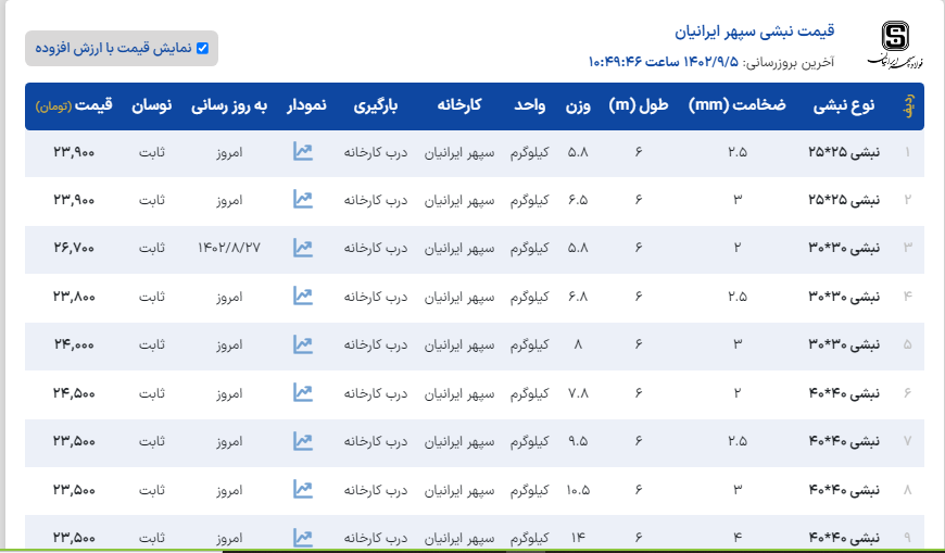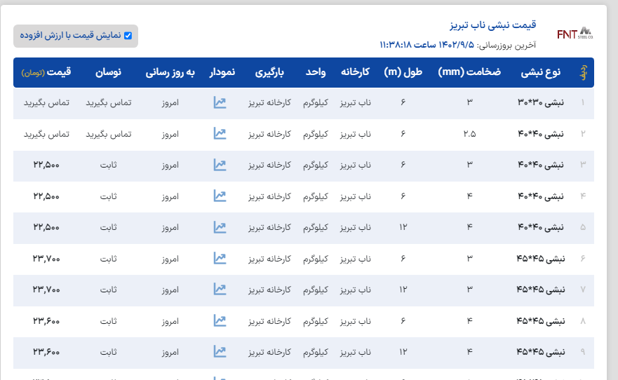 اعلام موجودی نبشی آراد فولاد آذربایجان #فولاد_آذر_نبش 🔸نبشی ۳*۴: ۲۲۴۰۰۰﷼ 🔸نبشی ۴*۴: ۲۲۴۰۰۰﷼ 🔸نبشی ۳*۵ : ۲۲۴۰۰۰﷼ 🔸نبشی۴*۵: ۲۲۳۰۰۰﷼ 🔸نبشی۵*۵ : ۲۲۳۰۰۰﷼ ✅تخفیف پای آدرس ✅ثابت ☎️ 041-37731232 📱 0914-4222215