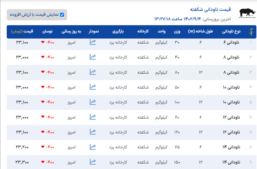 📋 لیست قیمت ناودانی بروزرسانی شد. 🗓یکشنبه 5 آذر ۱۴۰۲ یزد ناودانی 8 24800 ۶متری ناودانی 10 24800 ۶متری ناودانی 12 24800 ۶متری ناودانی 14 24900 ۶متری ماهان ناودانی 8 24700 ۶متری ناودانی 10 24700 ۶متری ناودانی 12 24700 ۶متری ناودانی 14 24800 ۶متری شکفته ناودانی 8 24800 ۶متری ناودانی 10 24800 ۶متری ناودانی 12 24800 ۶متری ناودانی 14 24900 ۶متری تبریز ناودانی 8 24800 ۶متری ناودانی 10 24800 ۶متری ناودانی 12 24800 ۶متری ناودانی 14 24900 ۶متری 🔵 Website www.ahanbazar.com ⚫️Telegram : https://t.me/ahanbaazar 🔴 Instagram : https://instagram.com/ahanbazar ☎️ تلفن : 021 - 55445622 021 - 55445623 🔶 تهران - اتوبان آزادگان - بازار آهن مکان - خ ششم غربی - پلاک 1622 📉📈 به علت نوسانات قیمت در بازارآهن، در صورت اقدام به خرید, گرفتن تأییدیه قیمت از دفتر فروش آهن_بازار الزامی میباشد.