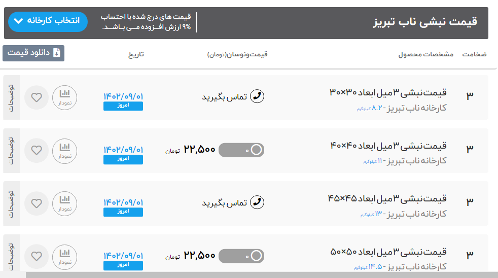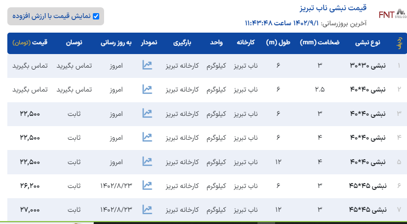 اعلام موجودی نبشی آهن یاب لیست کالای فولاد ناب تبریز : 📅 چهار شنبه : ۱۴۰۲/۹/۱ (ثبات قیمت) ♦️ نبشی ۴*۴ 💵22650 تومان ♦️نبشی ۵*۵ 💵22650 تومان ♦️ نبشی۶*۶ 💵22650 تومان ♦️ نبشی ۷*۷ 💵22650 تومان