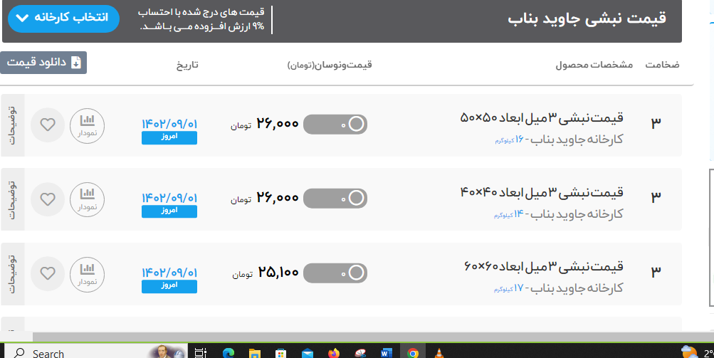 اعلام موجودی نبشی فولاد جاوید بناب " فولاد جاوید بناب " با سلام و عرض ادب *قیمت روز چهارشنبه ۱۴۰۲/۰۹/۰۱ 🔹نبشی 40*3 سبک : ۲۶۰۰۰۰ ریال 🔹نبشی 40*3 : ۲۳۵۰۰۰ ریال 🔹نبشی 40*4 سبک : ۲۳۵۵۰۰ ریال 🔹نبشی 40*4 : ۲۳۳۰۰۰ ریال 🔹نبشی 50*3 سبک : ۲۶۰۰۰۰ ریال 🔹نبشی 50*3 : ۲۳۵۰۰۰ ریال 🔹نبشی 50*4 سبک : ۲۳۷۰۰۰ ریال 🔹نبشی 50*4 : ۲۳۵۰۰۰ ریال 🔹نبشی 50*5 سبک : ۲۳۳۵۰۰ ریال 🔹نبشی 50*5 : ۲۳۲۰۰۰ ریال 🔹نبشی 60*3 : ۲۵۱۰۰۰ ریال 🔹نبشی 60*4 : ۲۴۲۰۰۰ ریال 🔹نبشی 60*5 : ۲۳۳۰۰۰ ریال