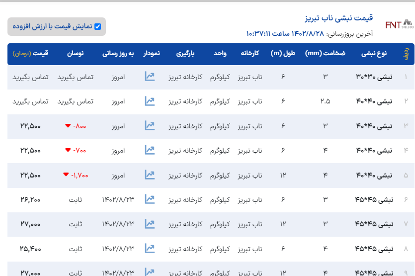 #آریان_فولاد نبشی 3*۴ »»232500««« نبشی ۴*۴ »»»229000««« نبشی ۴*۵ »»»229000««« نبشی ۵*۵ »»»229000««« نبشی ۶*۶ »»» 229000««« نبشی ۷*۷ »»»229000««« نبشی ۸*۸»»»229000««« نبشی ۱۰*۱۰ «««230500««« نبشی ۱۲*۱۲ »»230500««« نبشی ۱۵*۱۵ »» call ««« #آریان_فولاد 🟩🟩🟩 ✅کلیه محصولات ذکر شده دارای تاییده موجودی و قیمت میباشند. ❇️برای ثبت سفارش خود تماس حاصل فرمایید. ✅با فاکتور رسمی 🔱آهن آلات مجید حیدری🔱 ☎️021-55446006-9 📱09121168151