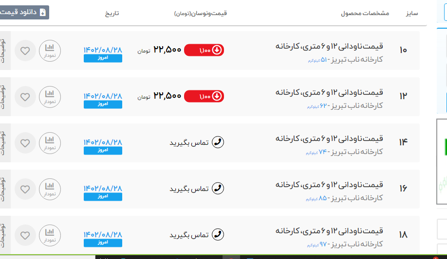 محصول قیمت (با مالیات) یکشنبه 1402/08/28 ساعت 12:43 ناودانی ۱۰ ناب تبریز-۶ متری کارخانه 23.500 ناودانی ۱۲ ناب تبریز-۶ متری کارخانه 23.500 ناودانی ۱۴ ناب تبریز-۶ متری کارخانه 24.500 ناودانی ۱۶ ناب تبریز-۶ متری کارخانه 24.500 ناودانی ۸ ناب تبریز-۶ متری کارخانه 23.500 ناودانی ۱۰ شکفته-۶ متری بنگاه تهران 25.200 ناودانی ۱۲ شکفته-۶ متری بنگاه تهران 25.300 ناودانی ۱۴ شکفته-۶ متری بنگاه تهران 25.300 ناودانی ۶ شکفته-۶ متری بنگاه تهران 25.200 ناودانی ۸ شکفته-۶ متری بنگاه تهران 25.200 ناودانی ۱۰ شکفته-۱۲ متری کارخانه 23.700 ناودانی ۱۰ شکفته-۶ متری کارخانه 23.600 ناودانی ۶ شکفته-۶ متری کارخانه 23.700 ناودانی ۸ شکفته-۶ متری کارخانه 23.600 ناودانی ۶ فولاد تهران-۶ متری بنگاه تهران 24.600 ناودانی ۸ فولاد تهران-۶ متری بنگاه تهران 24.400 ناودانی ۱۰ فولاد تهران-۶ متری کارخانه 25.900 ناودانی ۶ فولاد تهران-۶ متری کارخانه 25.900 ناودانی ۸ فولاد تهران-۶ متری کارخانه 25.900 📡 راه های ارتباطی در دیجی اهن: ☎️ شماره تماس: شماره چهار رقمی تهران 1849 شهرستانها 02186020094 instagram.com/digi.ahan :اینستاگرام🆔 🌐وبسایت: www.digiahan.com ✅تلگرام: https://t.me/Digiahan1849