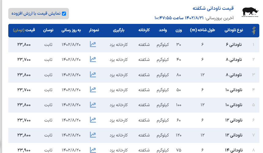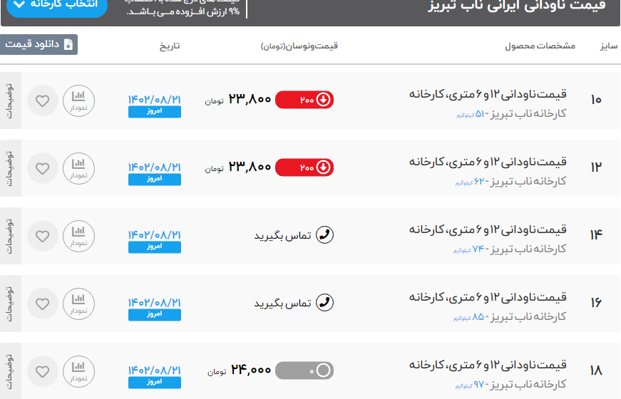 #قیمت #ناودانی #البرز_غرب_ابهر #کارخانه 🌎 یکشنبه 21 آبان ماه 1402 🌎 طول: 12متر ناودانی 8 ⏪ تماس بگیرید ناودانی 10 ⏪ 258000 ریال ناودانی 12 ⏪ 259000 ریال ناودانی 14 ⏪ 259000 ریال ناودانی 16 ⏪ 259000 ریال ناودانی 18 ⏪ 259000 ریال ✅تهران آهن خریدی امن,آسان,ارزان ✅کارشناس فروش : آقای قاجار 🔴 (https://tehran-ahan.com/) مشاهده قیمت ناودانی (https://tehran-ahan.com/product-category/channel/?utm_source=telegram&utm_medium=social&utm_campaign=channel) 🔴 (https://tehran-ahan.com/)⚙️برای مشاهده کامل جدول قیمت ناودانی می توانید به سایت تهران آهن مراجعه کنید: ✅(50 خط ویژه): ☎️021-86073000 📱 instagram.com/tehran.ahan 🌏 https://b2n.ir/r38781 🔗 t.me/Tehran_ahan