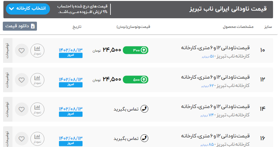 اعلام موجودی نبشی تجارت فولاد 369 مبدا تهران آریان فولاد مبدا تهران شکفته مبدا تهران ناب تبریز