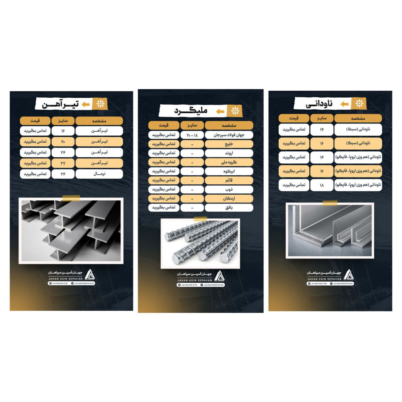 ✅ #شرکت_آسیا_فولاد_امین 🔵لیست نبشی و ناودانی🔵 ((انبار تهران)) 🔴1402/08/13🔴 #نبشی_سپهر 🔶نشی ۳ گوشت ۲/۵ سپهر:📞 #نبشی_آیهان 🔶نشی ۳ گوشت ۲/۵ آیهان:📞 #نبشي_اشتهارد 🔶نبشي 12 گوشت 12 اشتهارد:📞 🔶نبشی ۱۰ گوشت ۱۰ اشتهارد: 📞 #نبشی_پارسه 🔶نبشی ۴ گوشت ۳ پارسه : 📞 🔶نبشی ۴ گوشت ۴ پارسه : 📞 #نبشی_ظهوریان 🔶نبشی ۳ گوشت۳ ظهوریان:📞 🔶نبشی ۴ گوشت ۳ ظهوریان:📞 🔶نبشی ۵ گوشت ۳ ظهوریان:📞 🔶نبشي ٨ گوشت ۷ ظهوریان: 📞 #نبشی_شکفته 🔶نبشی ۳ گوشت ۳ شکفته:📞 🔶نبشی ۲/۵ شکفته:📞 #نبشی_آریان_فولاد 🔶نبشی ۴ گوشت ۳ آریان فولاد:📞 🔶نبشی ۴ گوشت ۴ آریان فولاد:📞 🔶نبشی۵ گوشت ۴ آریان فولاد:📞 🔶نبشی ۵ گوشت ۵ آریان فولاد:📞 🔶نبشی ۶ گوشت ۵ آریان فولاد:📞 🔶نبشی ۶ گوشت ۶ آریان فولاد:📞 🔶نبشی ۷ گوشت ۷ آریان فولاد:📞 🔶نبشی ۸ گوشت ۸ آریان فولاد:📞 🔶نبشی ۱۰ گوشت ۱۰ آریان فولاد:📞 🔶نبشی ۱۲ گوشت ۱۲ آریان فولاد:📞 🔶نبشی ۱۵ گوشت ۱۵ آریان فولاد:📞 #نبشی_دهشير_يزد 🔶نبشی ۱۰ گوشت ۱۰ دهشیر یزد:📞 #نبشي_لقمه 🔶نبشی لقمه ۸ * ٨ :📞 🔶نبشي لقمه ١٠* ١٠ :📞
