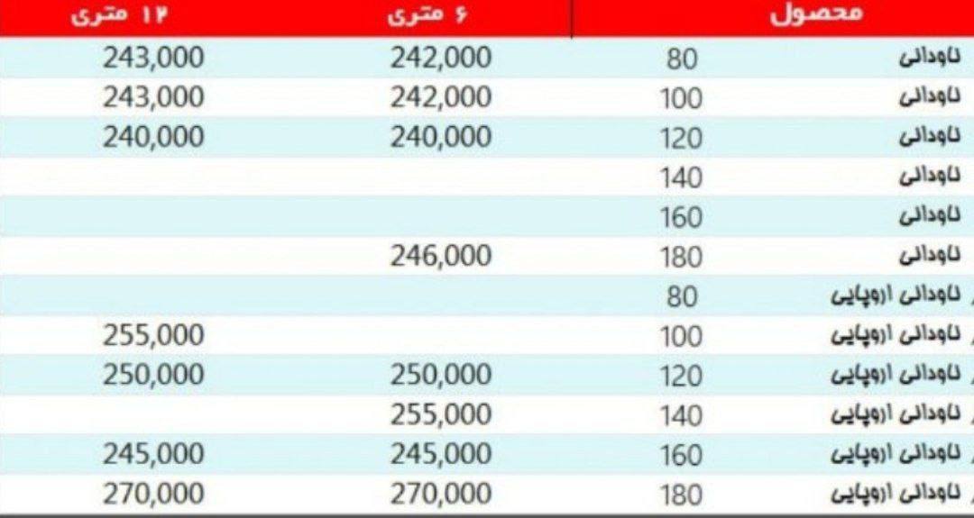 آرمان گستر اقتدار (آهن آرمان) 👈 ضمانت یک خرید مطمئن👉 #قیمت روز انواع #ناودانی #ناودانی_استاندارد #استاندارداروپا #استاندارد 🗓 چهارشنبه، 10 آبان 1402 🗓 . 📢قیمت روز ناودانی استاندارد (اروپا) انبار تهران📢 🏭 طول 6 متری🏭 🔸 سایز 4 بال 20B (شاخه 17 کیلویی): 338.000 ریال 🔸 سایز 5 بال 25B (شاخه 23 کیلویی): 293.000 ریال 🔸 سایز 5 بال 38B (شاخه 33 کیلویی): 538.000 ریال 🔸 سایز 6.5 بال 42B (شاخه 42 کیلویی): 528.000 ریال ~~~~~~~~~~~~~~~~~~ 📢قیمت روز ناودانی استاندارد (اروپا) انبار تهران📢 🏭 طول 12 متری🏭 🔸 سایز 6.5 بال 42B (شاخه 85 کیلویی): 528.000 ریال 🔸 سایز 8 بال 45B (شاخه 104 کیلویی): 266.000 ریال 🔸 سایز 10 بال 50B (شاخه 127 کیلویی): 261.000 ریال 🔸 سایز 12 بال 55B (شاخه 160 کیلویی): 261.000 ریال 🔸 سایز 14 بال 60B (شاخه 192 کیلویی): 258.000 ریال 🔸 سایز 16 بال 65B (شاخه 225 کیلویی): 258.000 ریال 🔸 سایز 18 بال 70B (شاخه 264 کیلویی): 278.000 ریال 🔸 سایز 20 بال 75B (شاخه 303 کیلویی): 308.000 ریال 🔸 سایز 22 بال 80B (شاخه 352 کیلویی): 293.000 ریال 🔸 سایز 24 بال 85B (شاخه 398 کیلویی): 278.000 ریال 🔸 سایز 26 بال 90B (شاخه 454 کیلویی): 423.000 ریال 🔸 سایز 28 بال 95B (شاخه 500 کیلویی): 423.000 ریال 🔸 سایز 30 بال 100B (شاخه 550 کیلویی): 538.000 ریال 🔸 سایز 32 بال 100B (شاخه 714 کیلویی): 668.000 ريال 🔸 سایز 35 بال 100B (شاخه 720 کیلویی): ء call 🔸 سایز 38 بال 102B (شاخه 757 کیلویی): ء call 🔸 سایز 40 بال 110B (شاخه 860 کیلویی): 638.000 ريال ~~~~~~~~~~~~~~~~~~ 📢قیمت روز ناودانی استاندارد (تولید داخل) انبار تهران📢 🏭 طول 6 متری🏭 🔸 سایز 5 (شاخه 22 کیلویی): 293.000 ریال 🔸 سایز 5 (شاخه 25کیلویی): ء call 🔸 سایز 6 (شاخه 24 کیلویی): 260.000 ریال 🔸 سایز 6 (شاخه 28 کیلویی): 258.000 ریال 🔸 سایز 8 (شاخه 32 کیلویی): 248.000 ریال 🔸 سایز 8 (شاخه 40 کیلویی): 248.000 ریال 🔸 سایز 10 (شاخه 39 کیلویی): 248.000 ریال 🔸 سایز 10 (شاخه 50 کیلویی): 248.000 ریال 🔸 سایز 12 (شاخه 53 کیلویی): call 🔸 سایز 12 (شاخه 61 کیلویی): 256.000 ریال 🔸 سایز 14 (شاخه 66 کیلویی): 256.000 ریال 🔸 سایز 14 (شاخه 73 کیلویی): 256.000 ریال 🔸 سایز 16 (شاخه 81 کیلویی): 256.000 ریال ~~~~~~~~~~~~~~~~~~ 📢قیمت روز ناودانی استاندارد (تولید داخل) انبار تهران📢 🏭 طول 12 متری🏭 🔸 سایز 8 (شاخه 65 کیلویی): 256.000 ریال 🔸 سایز 8 (شاخه 80 کیلویی): 256.000 ریال 🔸 سایز 10 (شاخه 80 کیلویی): 256.000 ریال 🔸 سایز 10 (شاخه 100 کیلویی): 256.000 ریال 🔸 سایز 12 (شاخه 104 کیلویی): 256.000 ریال 🔸 سایز 12 (شاخه 122 کیلویی): 256.000 ریال 🔸 سایز 14 (شاخه 134 کیلویی): 256.000 ریال 🔸 سایز 14 (شاخه 146 کیلویی): 256.000 ریال 🔸 سایز 16 (شاخه 162 کیلویی): 256.000 ریال 🔸 سایز 18 (شاخه 192 کیلویی): 256.000 ریال 🔸 سایز 20 (شاخه 230 کیلویی): call ~~~~~~~~~~~~~~~~~~ ☎️۰۲۱-۵۸۳۳۶ داخلی 115 خانم گل پرور 🌐www.ahanarman.com وب سایت @AhanArmanPrice🆔 کانال قیمت روز تلگرام