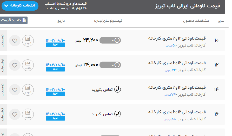 سایز80*80 ضخامت5 حالت6 متری محل تحویل کارخانه سایز90*90 ضخامت5 حالت6 متری محل تحویل کارخانه سایز100*100ضخامت5حالت6متری محل تحویل کارخانه سایز120*120ضخامت5 حالت6متری محل تحویل کارخانه سایز140*140ضخامت 5حالت6متری محل تحویل کارخانه سایز100*100ضخامت6حالت6متری محل تحویل کارخانه سایز120*120 ضخامت6حالت6متری محل تحویل کارخانه سایز60*120 ضخامت 6حالت6متری محل تحویل کارخانه سایز140*140ضخامت6حالت6 متری محل تحویل کارخانه سایز250*150ضخامت6حالت6 متری محل تحویل کارخانه جهت اطلاع از قیمت با شماره 03152467528 داخلی 100-103تماس بگیرید و یا از لینک تلگرام azinsepehralvand1@ ثبت سفارش کنید.