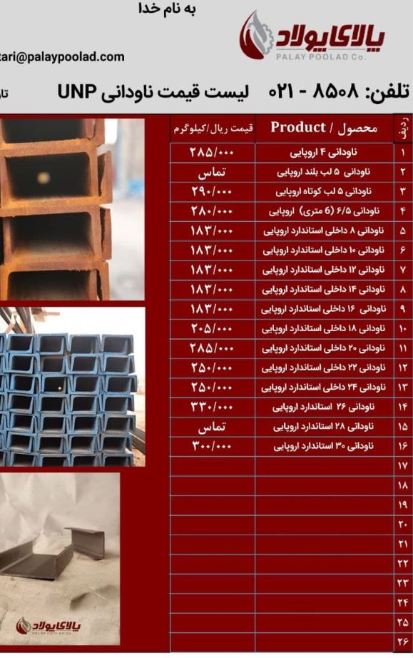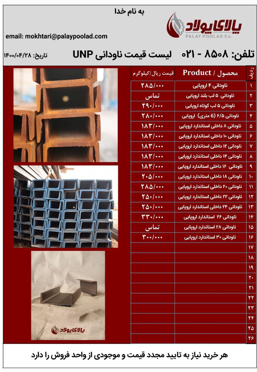 ناودانی مرجع تخصصی توزیع آهن آلات اعلام قیمت 8508-021 مدیر فروش : مجتبی مختاری داخلی 400و401