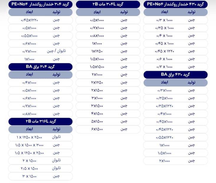 #آکام_فولاد_پرگاس 💠تامین کننده اصلی ورق های فولاد اکسین 💠عرضه ورق های کاویان ، مبارکه ، استیل و وارداتی 🎲تامین کننده ی ورق استیل 2B) 304) ضخامتهای : 🎲 0/8 میلیمتر عرض یک متر 🎲 1 میلیمتر عرض یک متر موجودی جهت فروش ورق استیل تیسکو چین گرید 304L 2B ضخامت ۱ عرض ۱ ضخامت ۲ عرض ۱،۵ ضخامت ۳ عرض ۱،۵ ضخامت ۴ عرض ۱،۵ فروش به صورت رول ☸️موجودی ورق های فولاد اکسین A283-ST37-ST52 10*2*6➖12 12*2*6➖12 15*2*6➖12 20*2*6➖12 25*2*6➖12 30*2*6➖12 35*2*6➖12 40*2*6➖12 50*2*---- #جهت_مشاهده_پروفایل_آکام_فولاد_پرگاس👇 🪐https://foolad24.com/profile/13927 #جهت_مشاهده_اعلام_موجودی_آکام_فولاد_پرگاس👇 🪐https://foolad24.com/profile/13927/inventory ☎️02122748441 ☎️02122748442 📲09122382519 🪐Akamfoulad.com