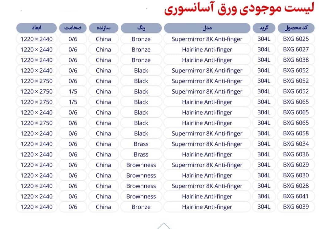با عرض سلام و احترام احتراما لیست موجودی ورقهای شرکت در فایل ضمیمه شده زیر تقدیم حضور خریداران محترم می شود در صورت تمایل به خرید این محصولات لطفا با ما تماس حاصل فرمایید. با تشکر