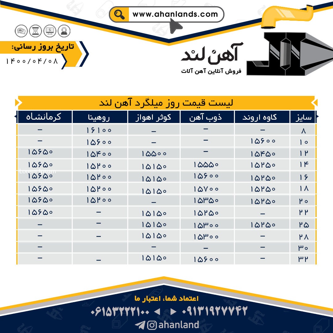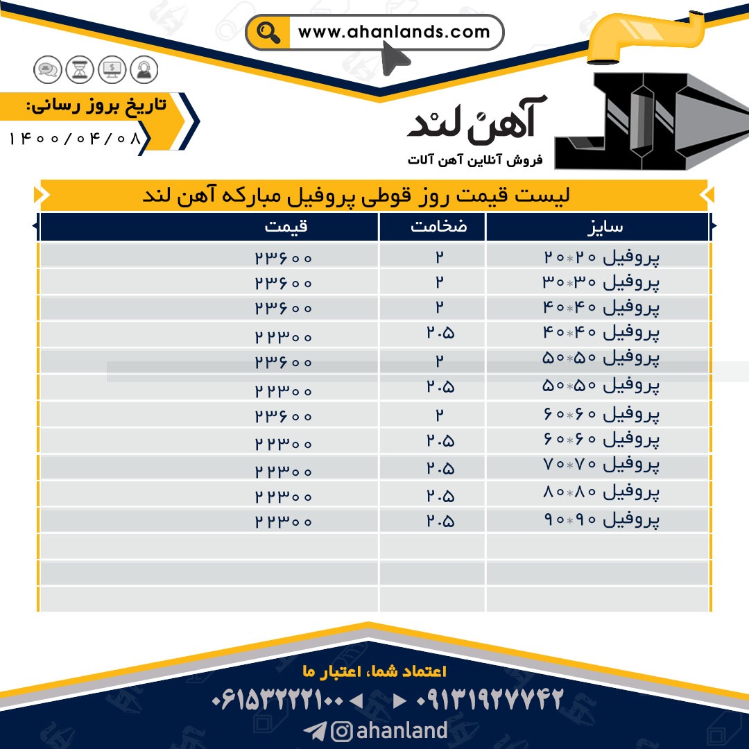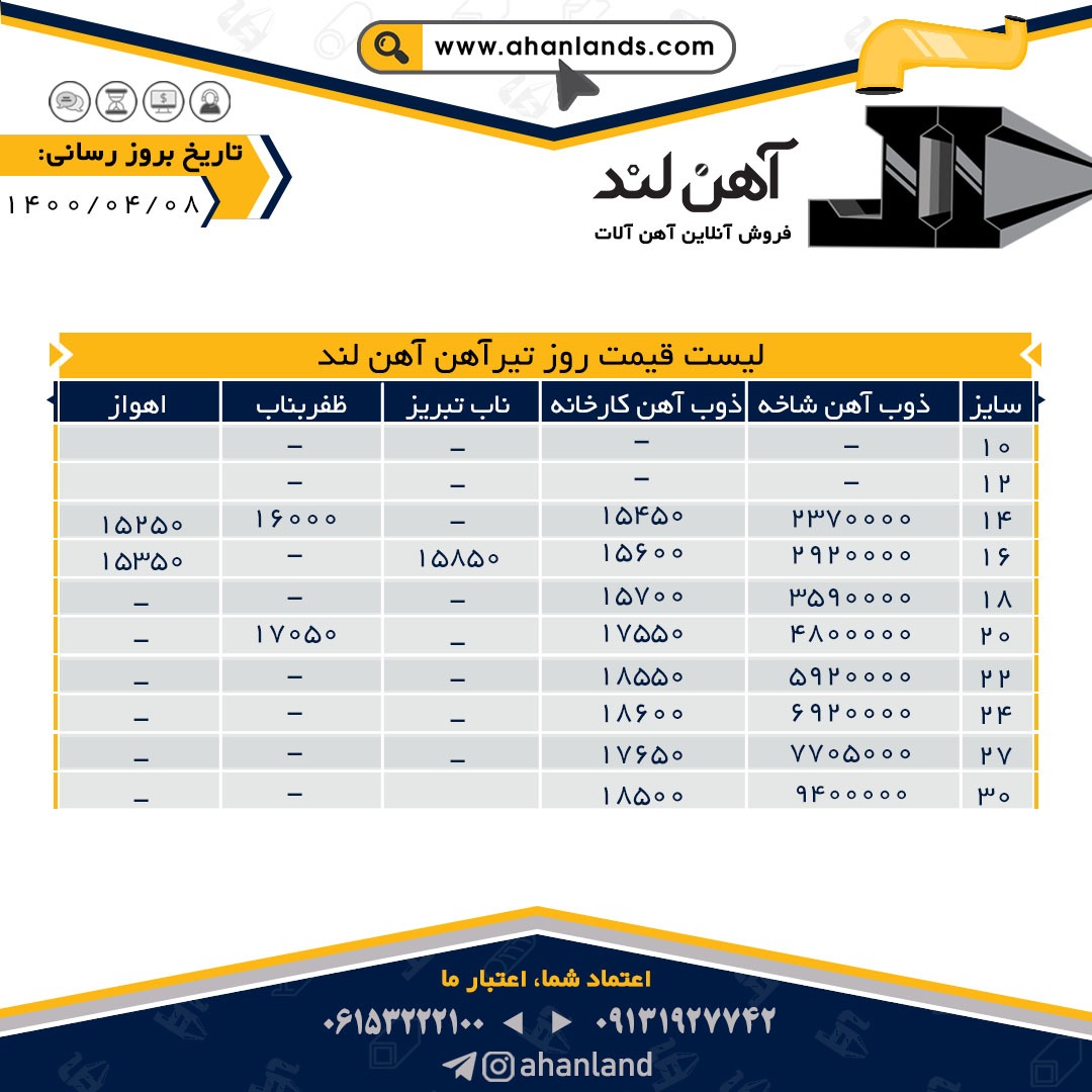🔴آهن لند🔴 لیست قیمت هشتم تیرماه 1400 برای مشاهده آنلاین قیمت انواع مقاطع فولادی به وب سایت زیر مراجعه نمایید: WWW.AHANLANDS.COM ⚜اعتماد شما اعتبار ماست⚜ ارتباط با کارشناسان ما: https://zil.ink/ahanland 📍آدرس اینستاگرام آهن لند https://lnkd.in/d4epHFt