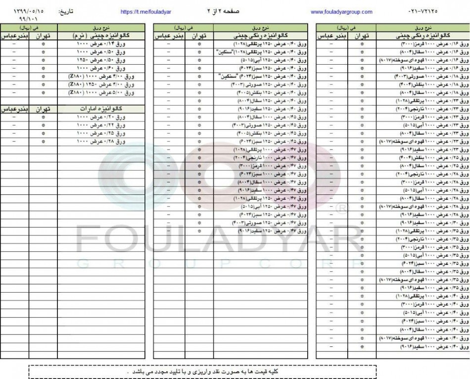 صورت بار تولیدات و مصنوعات فلزی کد : 33138