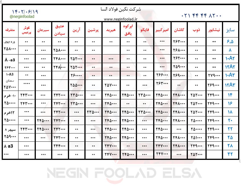 سایز80*80 ضخامت5 حالت6 متری محل تحویل کارخانه سایز90*90 ضخامت5 حالت6 متری محل تحویل کارخانه سایز100*100ضخامت5حالت6متری محل تحویل کارخانه سایز120*120ضخامت5 حالت6متری محل تحویل کارخانه سایز140*140ضخامت 5حالت6متری محل تحویل کارخانه سایز100*100ضخامت6حالت6متری محل تحویل کارخانه سایز120*120 ضخامت6حالت6متری محل تحویل کارخانه سایز60*120 ضخامت 6حالت6متری محل تحویل کارخانه سایز140*140ضخامت6حالت6 متری محل تحویل کارخانه سایز250*150ضخامت6حالت6 متری محل تحویل کارخانه جهت اطلاع از قیمت با شماره 03152467528 داخلی 100-103تماس بگیرید و یا از لینک تلگرام azinsepehralvand1@ ثبت سفارش کنید.