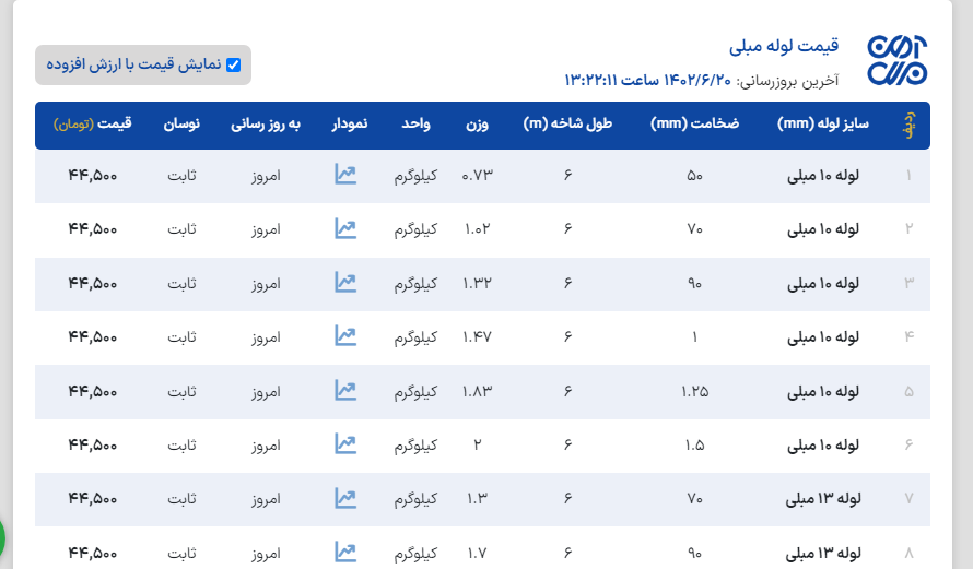 لوله 1/2 تا 4 اینچ ضخامت 2 ⬅️ 36800 تومان لوله 1/2 تا 4 اینچ ضخامت 2/5 ⬅️ 37800 تومان لوله 1/2 تا 4 اینچ ضخامت 5 ⬅️ 37800 تومان لوله 1/2 تا 4 اینچ ضخامت 2/5 ⬅️ 36800 تومان لوله 1/2 تا 4 اینچ ضخامت 3 ⬅️ 36800 تومان لوله 1/2 تا 4 اینچ ضخامت 4 ⬅️ 36800 تومان