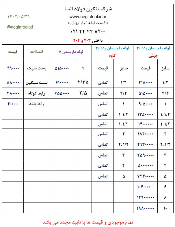 سایز1 اینچ رده20 برند وارداتی واحد شاخه سایز1/2 اینچ رده20 برندوارداتی واحدشاخه سایز3/4 اینچ رده20 برندوارداتی واحدشاخه سایز1/2 2 اینچ رده20 برندوارداتی واحدشاخه سایز2 اینچ رده20 برندوارداتی واحدشاخه سایز1/2 1 اینچ رده20 برندوارداتی واحدشاخه سایز3 اینچ رده20 برندوارداتی واحدشاخه سایز1/4 1 اینچ رده20 برندوارداتی واحدشاخه سایز4 اینچ رده20 برند وارداتی واحدشاخه سایز5 اینچ رده20 برندشوارداتی واحد شاخه سایز6 اینچ رده20 برندوارداتی واحدشاخه سایز8 اینچ رده20 برندوارداتی واحدشاخه جهت اطلاع از قیمت با شماره 03152467528 داخلی 100-103تماس بگیرید و یا از لینک تلگرام azinsepehralvand1@ ثبت سفارش کنید.