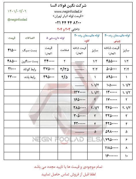 شنبه 9 مهر 1401 🔴لوله مبلی انواع کارخانه 🔴 🟠قیمت روز محصولات فولادی🟠 🆔 @ramcoir 🆔 instagram.com/ramco.ir 🌐 www.ramco.ir ☎️ 02171400040