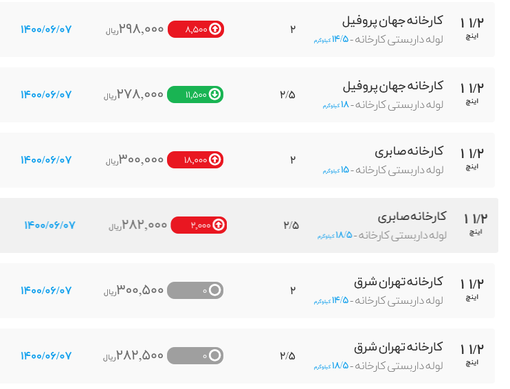 #لوله_داربستی کارخانه های کشور 🗓یکشنبه 7 شهریورماه 1400🗓 کارخانه #صابری سایز 2 میلیمتر: 30000 سایز 2.5 میلیمتر: 28200 کارخانه #صدرا سایز 2 میلیمتر: 30000 سایز 2.5 میلیمتر: 28500 کارخانه #جهان سایز 2 میلیمتر: 29800 سایز 2.5 میلیمتر: 27800 کارخانه #تهران_شرق سایز 2 میلیمتر: 30000 سایز 2.5 میلیمتر: 28200 کارخانه #پایااصفهان سایز 2 میلیمتر: 29500 سایز 2.5 میلیمتر: 28000 📌ارتباط با کارشناسان فروش :👇🏻 ☎️ 021-54103