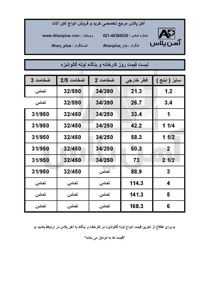 🌸1400/06/07🌸 #قیمت_لوله_گالوانيزه 📱 @ahanplus_co 📎اطلاع از قیمت روز کارخانجات 🔻 💻 www.ahanplus.com ✔️ جهت تایید قیمت و موجودی با آهن پلاس در ارتباط باشید✔️ 📞 02144384230 📞 02144376579
