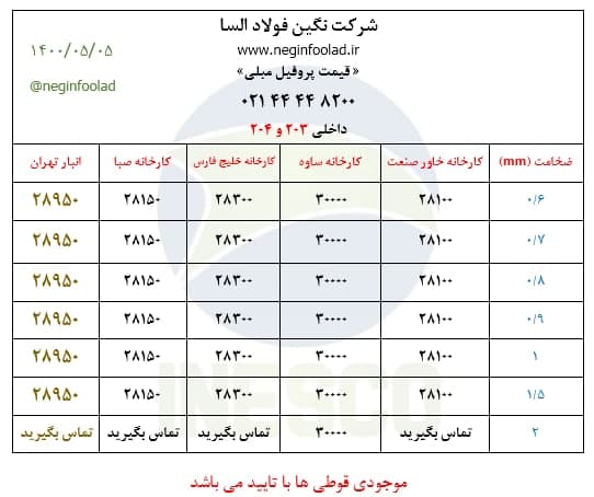 #لوله_داربستی کارخانه جهان 🗓 چهارشنبه 6 مرداد ماه 1400 🗓 ضخامت 2 : 25900 ضخامت 2.5 میل : 24900 📌ارتباط با کارشناسان فروش :👇🏻 ☎️ 021-54103