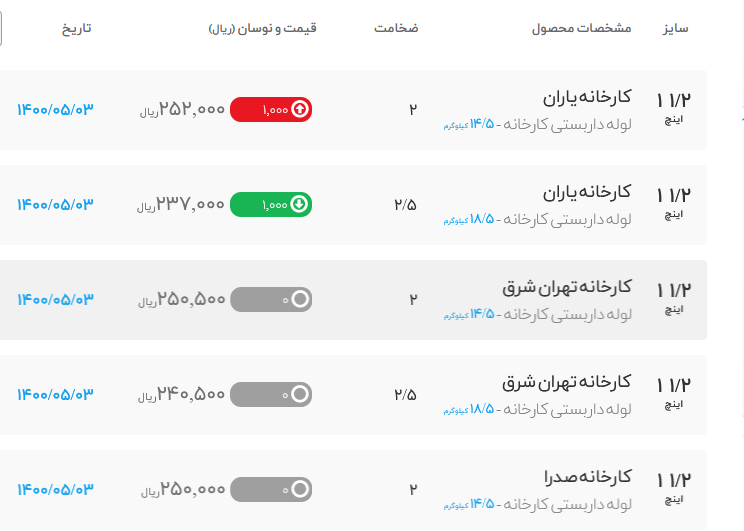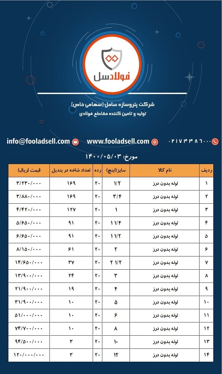 #لوله_داربستی کارخانه صدرا 🗓 یکشنبه 3 مرداد ماه 1400 🗓 ضخامت 2 میل : 25000 ضخامت 2.5 میل : 23500 📌ارتباط با کارشناسان فروش :👇🏻 ☎️ 021-54103
