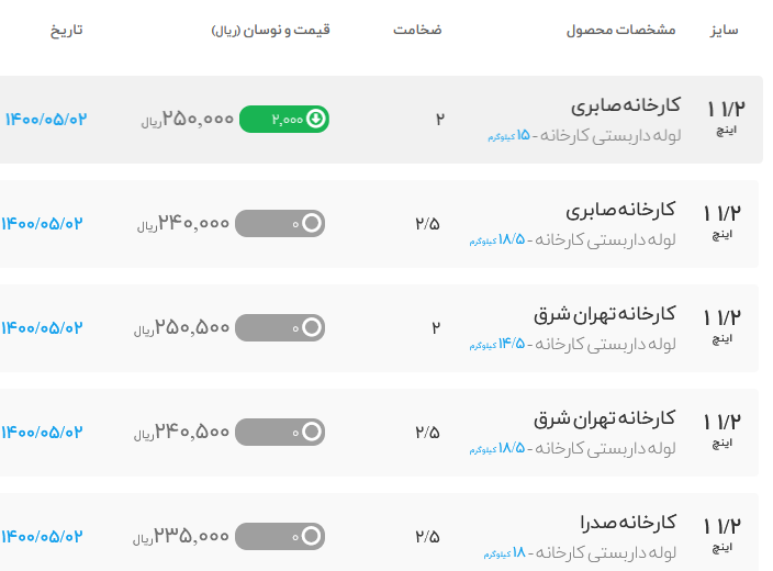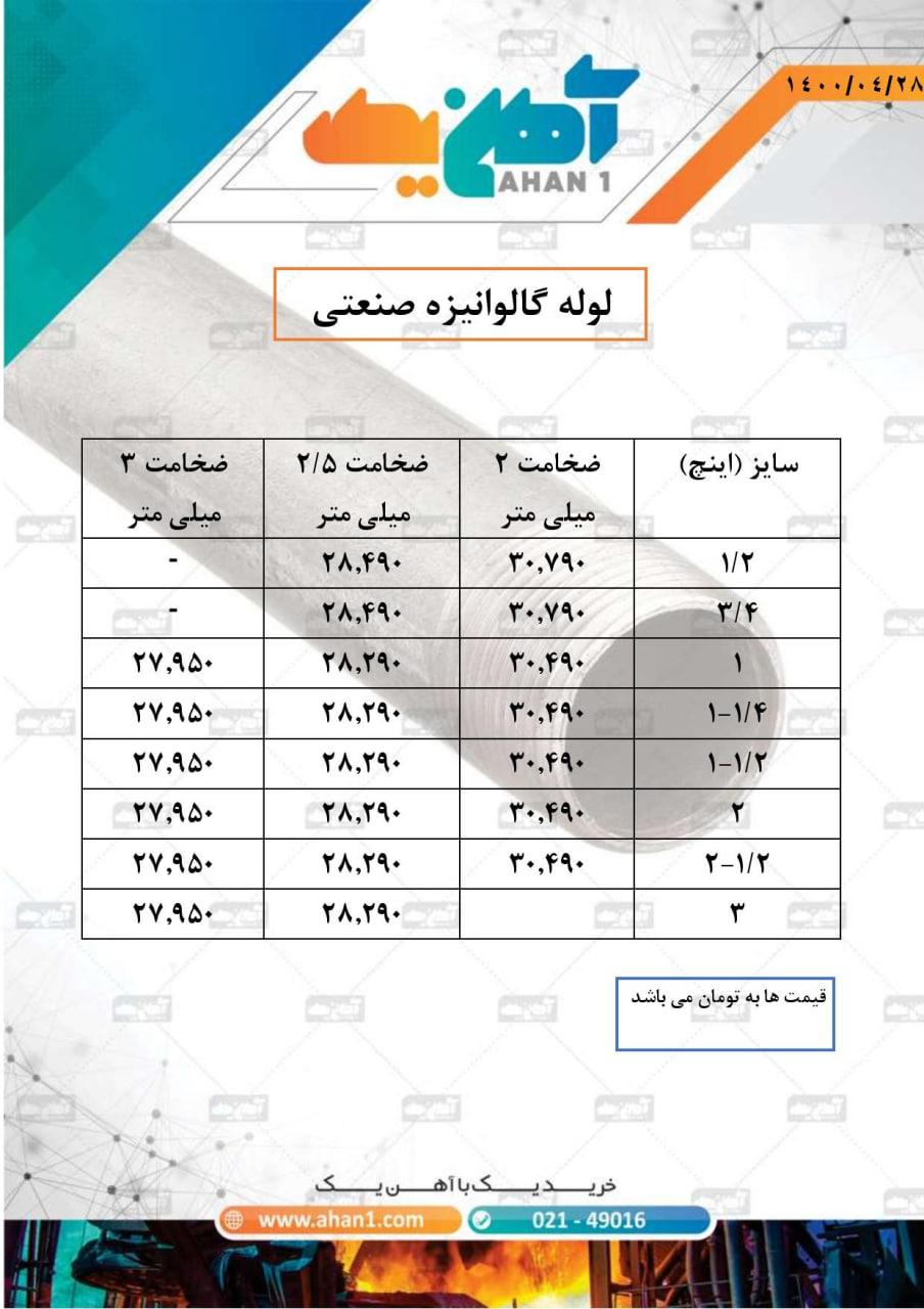 #لوله_داربستی کارخانه صدرا 🗓 یکشنبه 27 تیر ماه 1400 🗓 ضخامت 2 میل : 25000 ضخامت 2.5 میل : 23500 📌ارتباط با کارشناسان فروش :👇🏻 ☎️ 021-54103