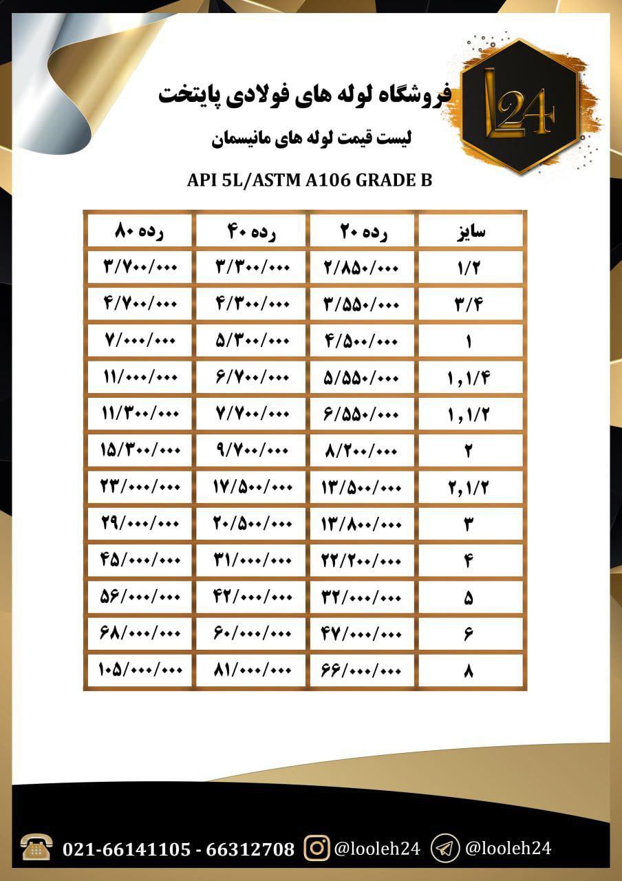 #لوله #مانیسمان #بدون_درز #رده_80 #وارداتی 🔴قیمت انواع لوله مانیسمان وارداتی A106 , API 5L , A53 , Gr B ✅به دلیل نوسان قیمت و تایید موجودی تماس بگیرید. ☎️تلفن : 02174486000 داخلی : 105 🔸خرید با ال سی بانکی بلند مدت برای تولید کنندگان امکانپذیر است🔸🔸
