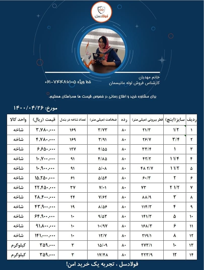 #لوله_داربستی کارخانه صدرا 🗓شنبه 2 مرداد ماه 1400 🗓 ضخامت 2.5 میل : 23500 📌ارتباط با کارشناسان فروش :👇🏻 ☎️ 021-54103