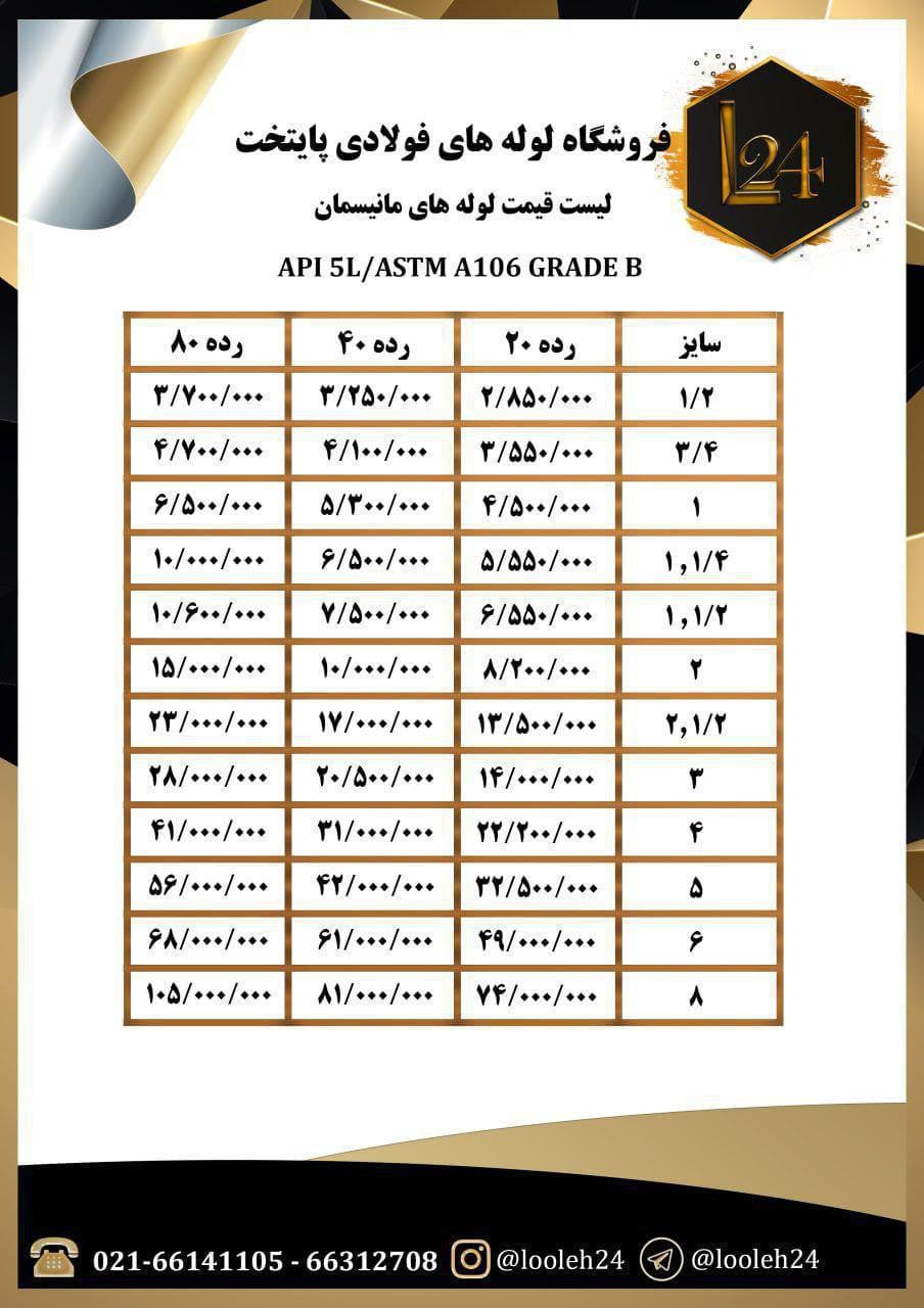 #لوله #مانیسمان #بدون_درز #رده_20 #وارداتی 🔴قیمت انواع لوله مانیسمان وارداتی A106 , API 5L , A53 , Gr B ✅به دلیل نوسان قیمت و تایید موجودی تماس بگیرید. ☎️تلفن : 02174486000 داخلی : 105 🔸خرید با ال سی بانکی بلند مدت برای تولید کنندگان امکانپذیر است🔸🔸