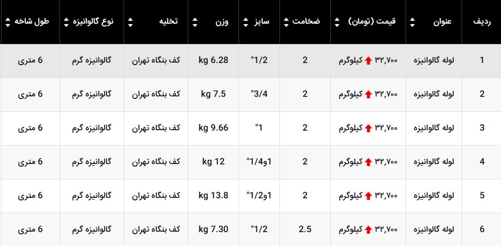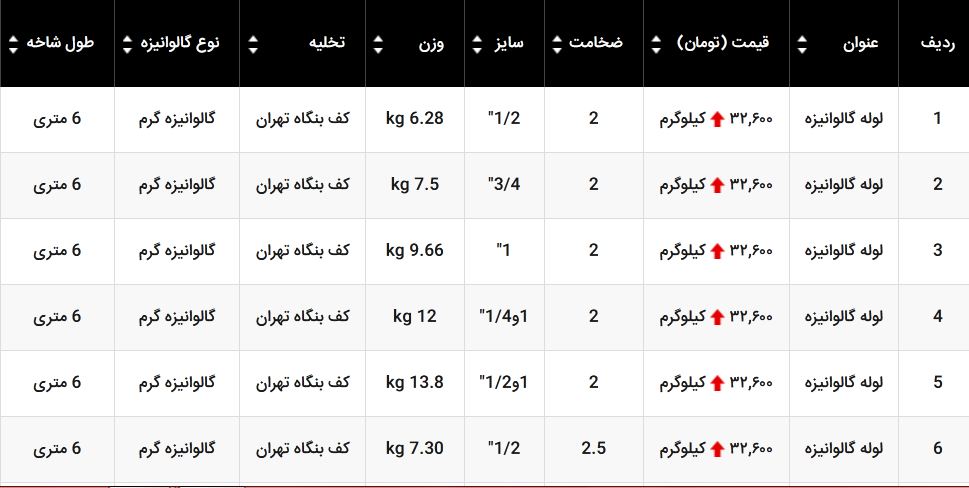 👈 #لوله_گالوانیزه : 💲افزایش حدودی 50 تومان 🔹واحد فروش : کیلوگرم 🌐مشاهده لیست قیمت لوله گالوانیزه ☎️ 021 - 555 11 555