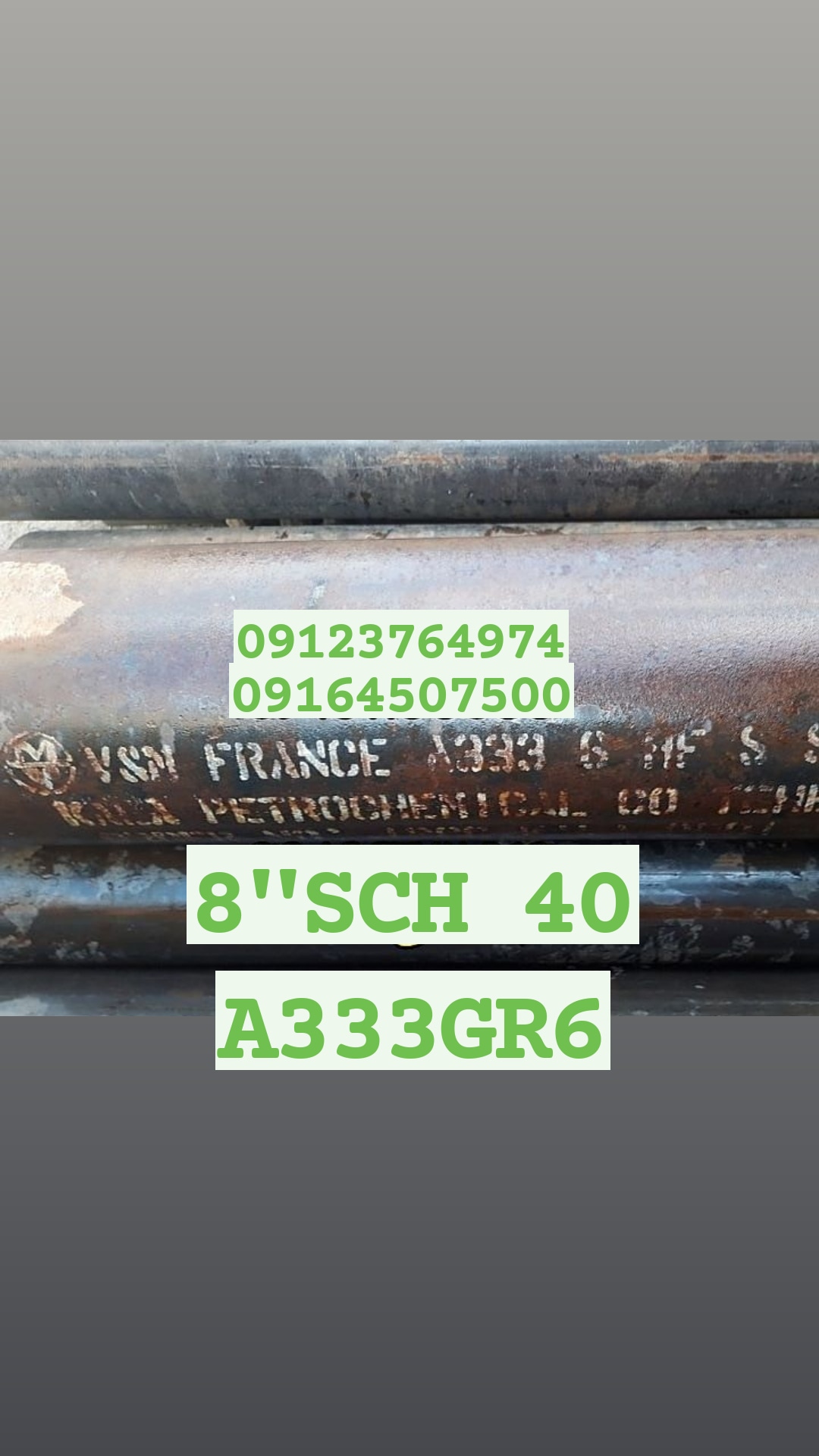 فروش لوله سایز 8اینچ A333 Gr6 برندv&mفرانسه با شناسنامه معتبر به شرط آنالیز. 09123764974 09164507500 02166633933