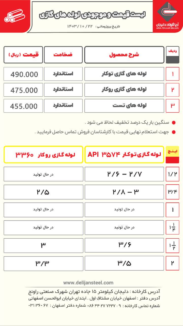 ✳️تولید کننده قوطی و پروفیل لوله های صنعتی و گازی✳️ ❇️آریا صنعت دلیجان❇️ *فولاد* *گیلانی* *چینی* ضخامت ۲ _ ۲.۵ _۳ _ ۳.۵ _ ۱.۷,۱.۸ لوله های ۱ اینچ تا ۶ اینچ ☎️تماس بگیرید ۰۹۱۳۴۶۰۰۰۷۴ _ صفری ۰۳۱۳۶۰۶۷ _ داخلی ۲۷۳_ ۲۷۴