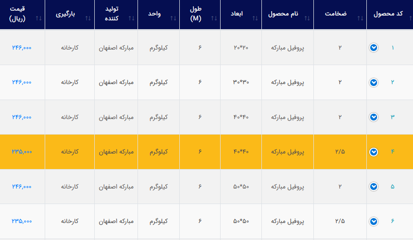 پروفیل کیان فولاد متین: 100 تومان افزایش قیمت 2 میل : 24450 تومان 2,5 میل : 23450 تومان 3 میل : 23650 تومان 4 میل : 23650 تومان تماس بگیرید. تلفن: 03136004