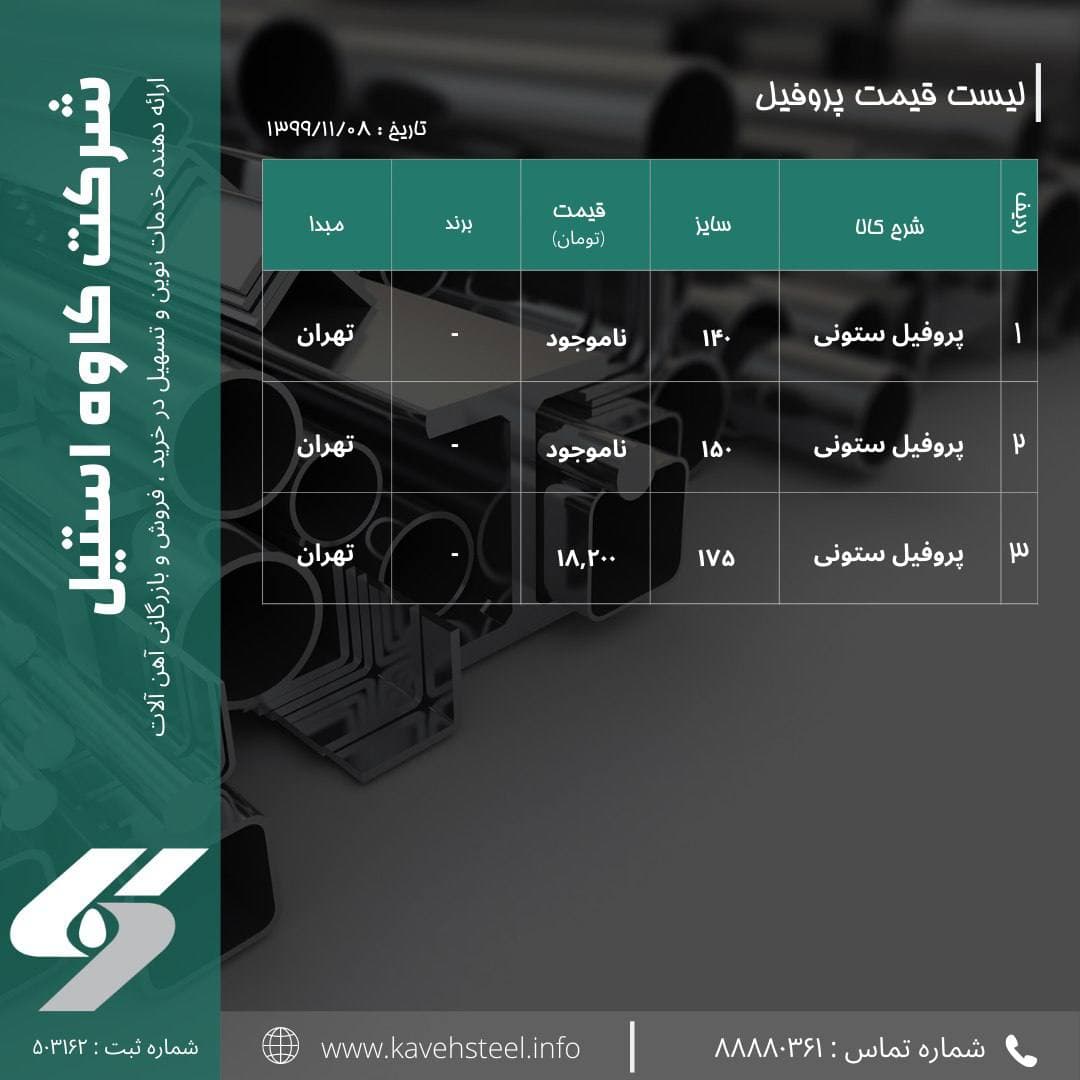 [ Photo ] 📌لیست قیمت #پروفیل_ستونی (تهران) 🗓تاریخ : ۱۳۹۹/۱۱/۰۸ شماره های تماس : 📞 02188880361 📞02188782852 @steel_kaveh