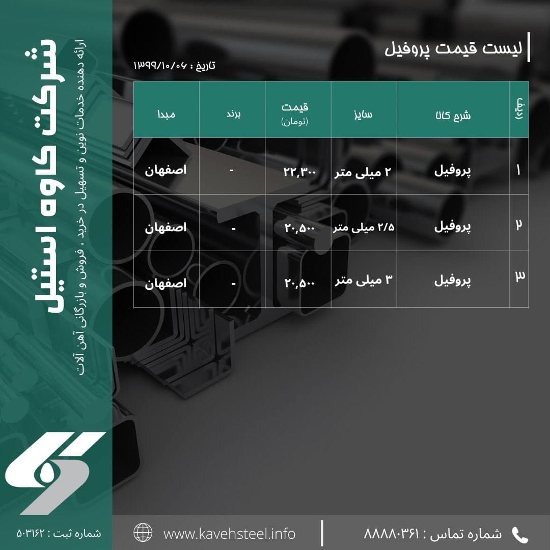 [ Photo ] 📌لیست قیمت #پروفیل (اصفهان) 🗓تاریخ : ۱۳۹۹/۱۰/۰۶ شماره های تماس : 📞 02188880361 📞02188782852 @steel_kaveh